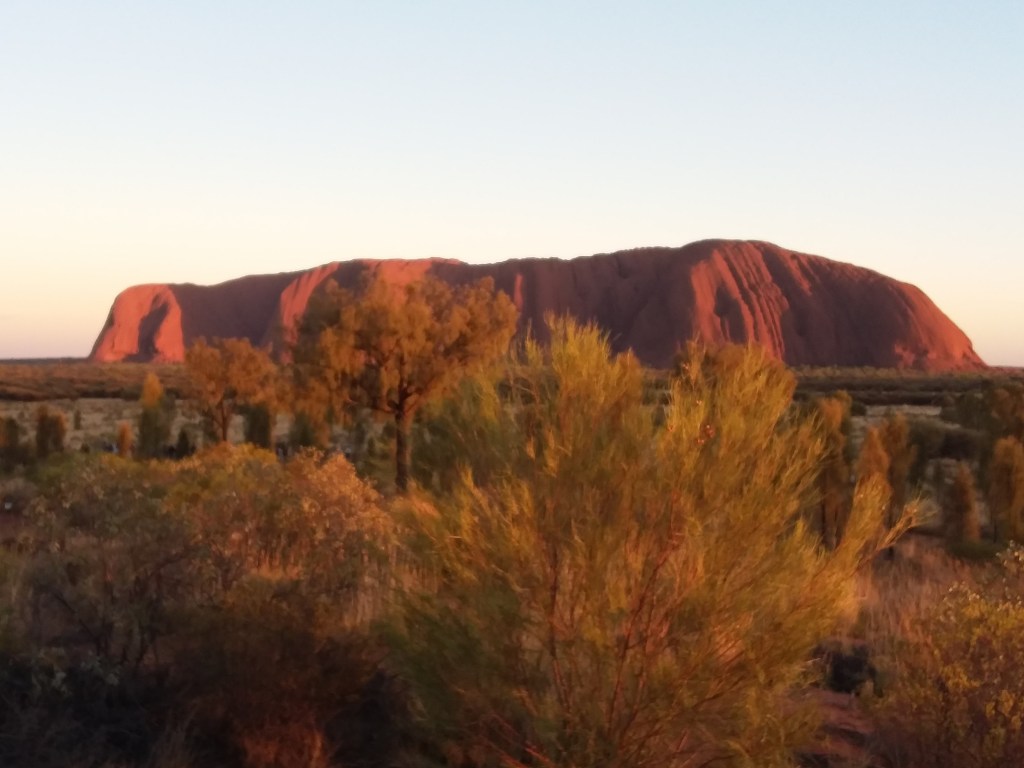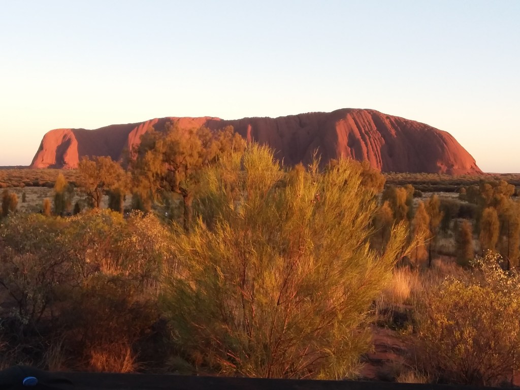 Depart by coach to the sun rise viewpoint near the Rock. Had to return 10mins out to rescue a group of 11 Americans heading to the same location. Unfortunately, their coach, from the same company as ours, had broken down st the hotel. Having done our bit for international relations, we reached the viewpoint at 6.45, in time for sunrise at 7.03am.