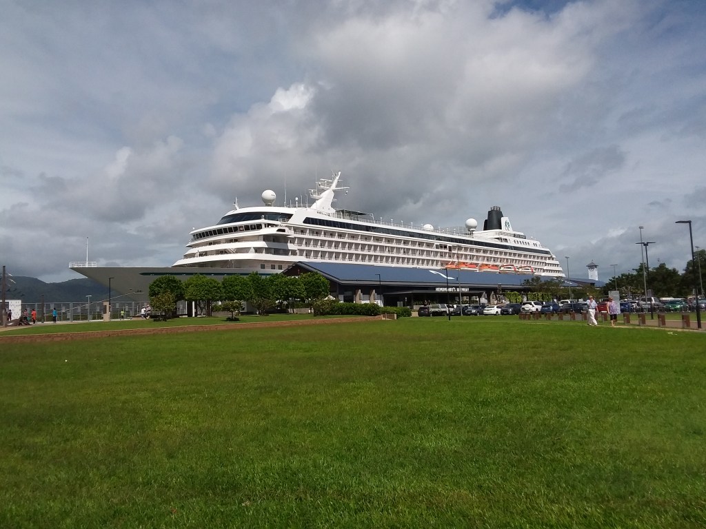 Back to hotel for a quick rest then out for dinner, not before watching the “Crystal Symphony” depart Cairns, kindly sailing past the end of our road.