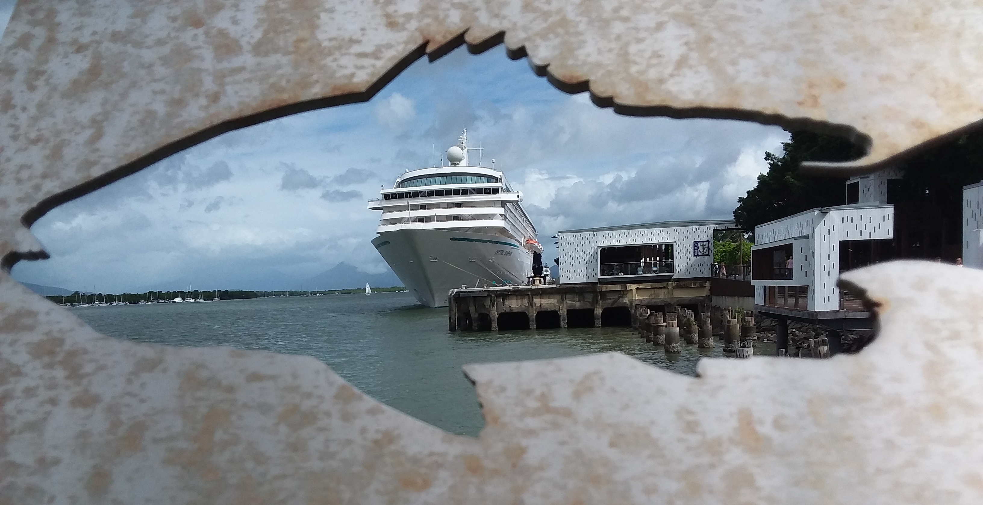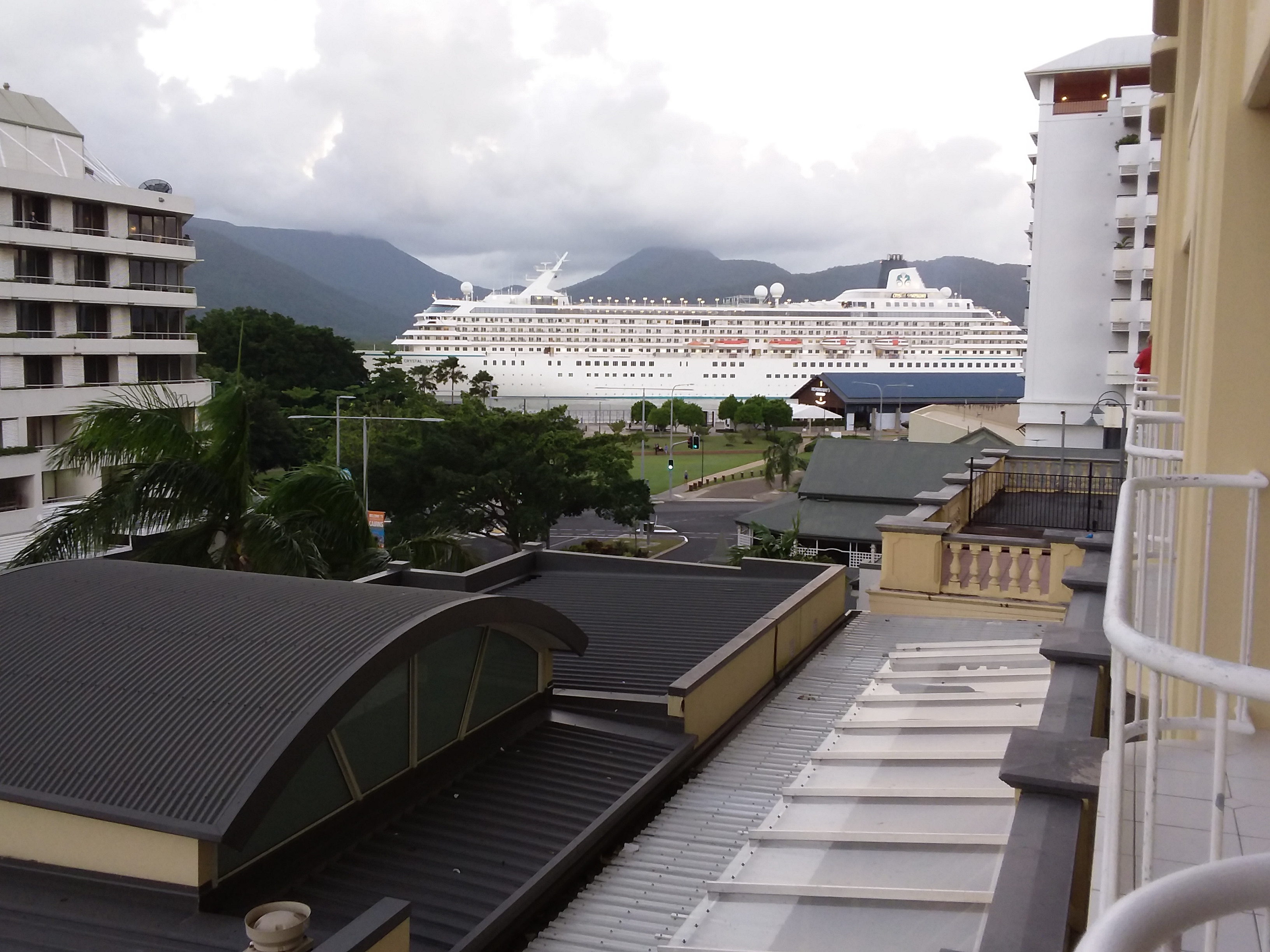Cruise liner “Crystal Symphony” arrived at Cairns Terminal overnight, and was easily spotted not far from our hotel.