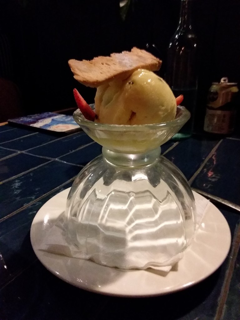 Back to room for a bit of relaxation then out again this evening for dinner at Dundee’s Restaurant I know we’re in Australia, but do the passion fruit sorbets have to be upside down?!