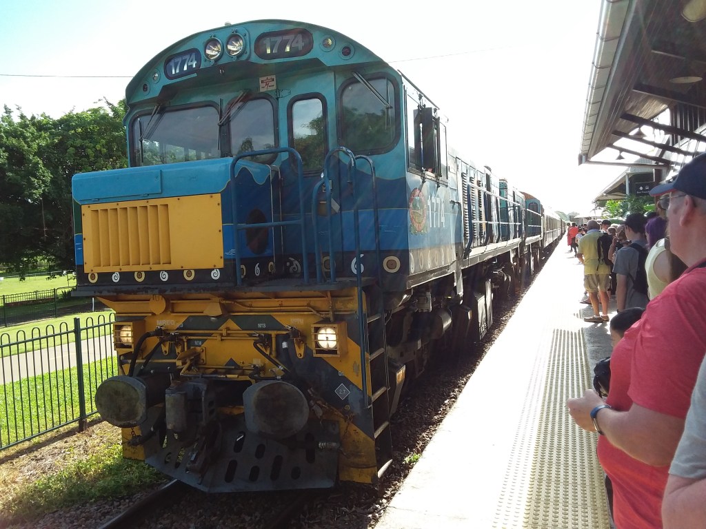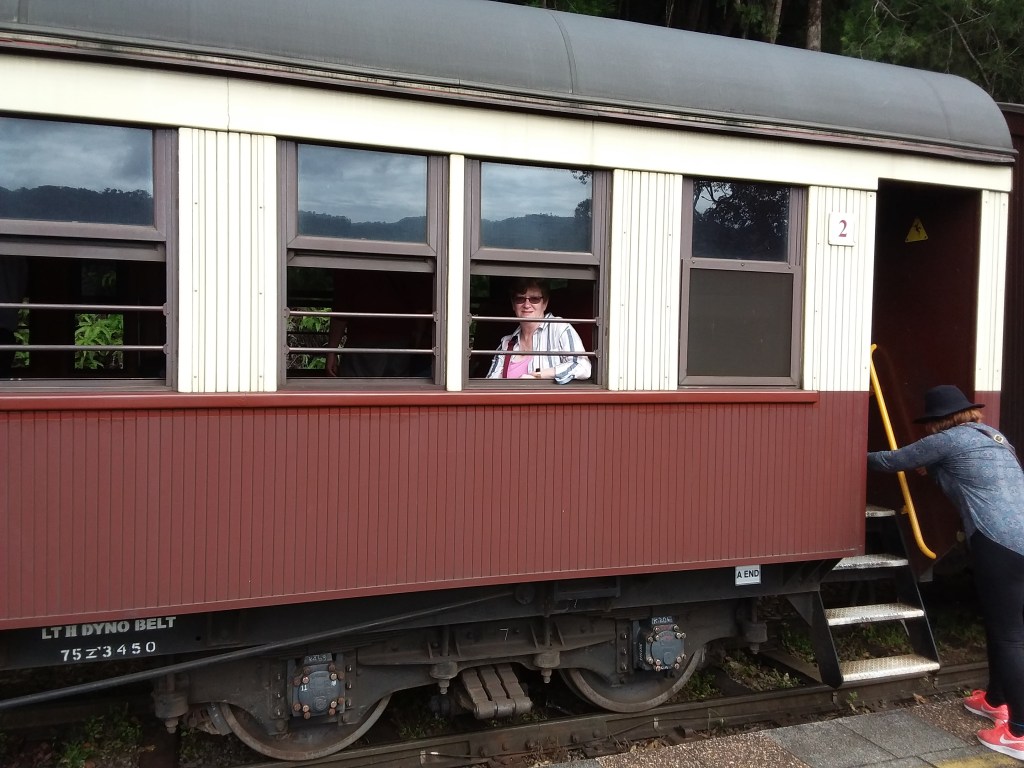 Good day today! Coach to Freshwater Station ( it being rather more picturesque than Cairns Station). 45 mins to wait for train so had a bit of an investigate of the station. Gift shop ok. Toilet walls lined with marble mined in Queensland! Train arrived on time!