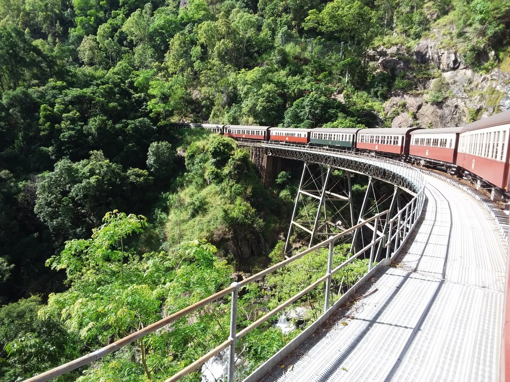Seats booked in Car 2 for 2hr journey to Kuranda on the Kuranda Scenic Railway. Negotiated a couple of 180 deg turns on the line, where we had a good view of the other end of the train!