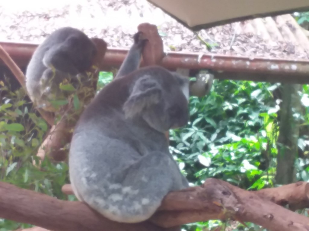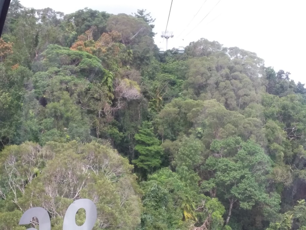 Was also a female grey kangaroo with a Joey in her pouch, but she wasn’t for coming within photo range! The Joey seemed interested though! After respective visits, had lunch at a French crepes cafe in the park. An obligatory ice cream followed before making our way down to the Skyrail Rainforest Cableway for the journey back to Smithfield.