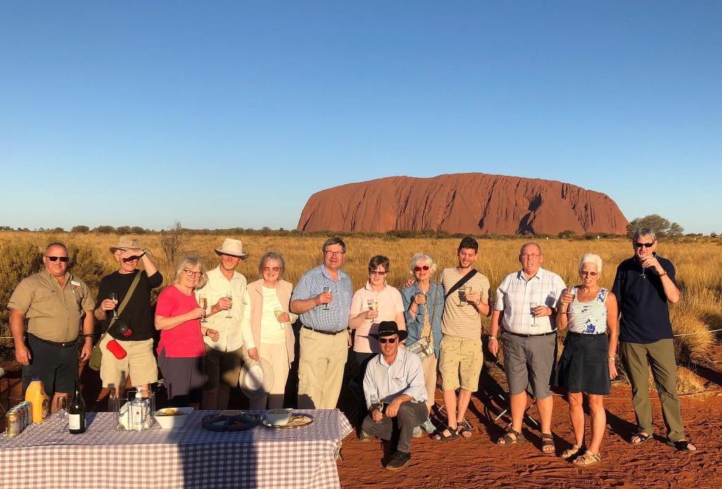 Our tour group from Grand Australian Tour April 2019. Marcus our Tour Director, kneeling. Gary our driver/guide, for this leg, on left.