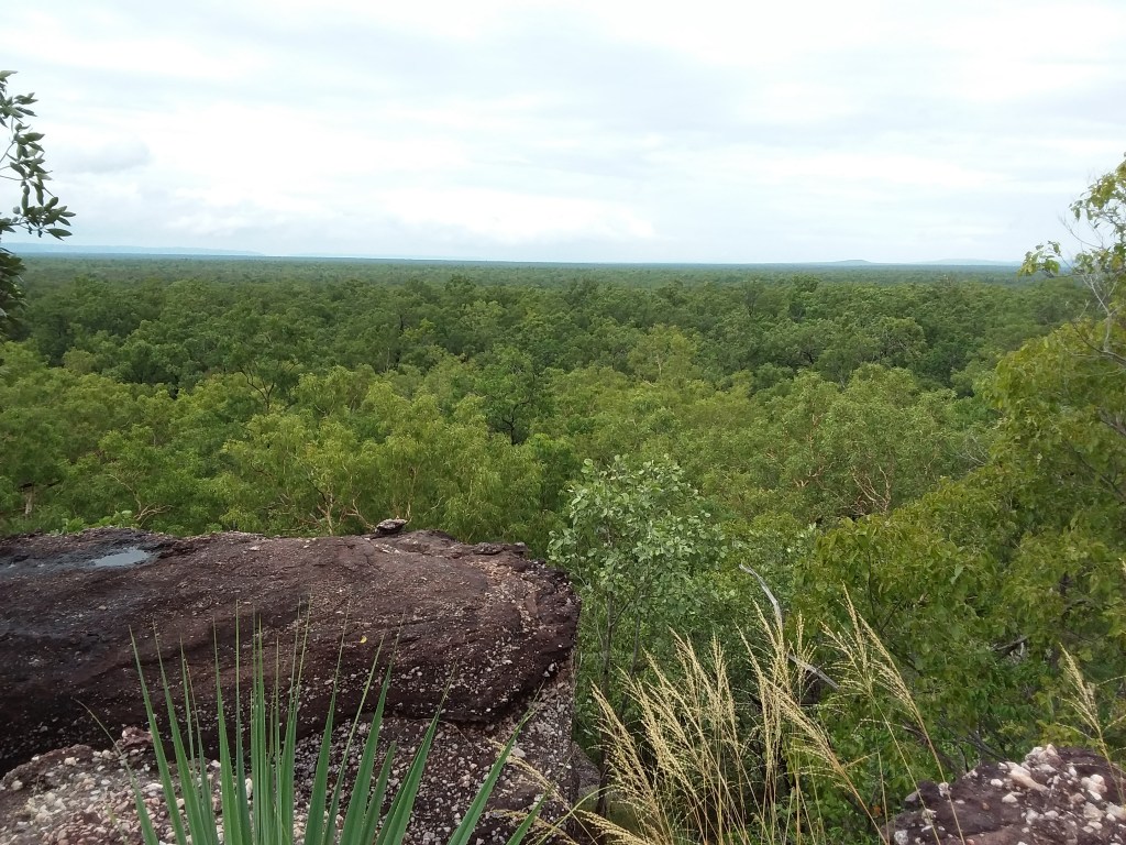 Explanations were given by Debs our guide, who, over the years had befriended Jeffrey Lee, one of the elders of the Aboriginal Clan looking after Anbangbang. Only a certain amount of information is dispensed by the elders – more given as trust is earned. A further climb via rough path over a couple of hundred metres, took us to a lookout above tree canopy level.
